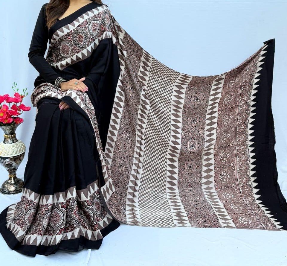Perfect for festive occasions, weddings, and cultural events, this Ajrakh saree adds a touch of elegance to your ethnic wardrobe.