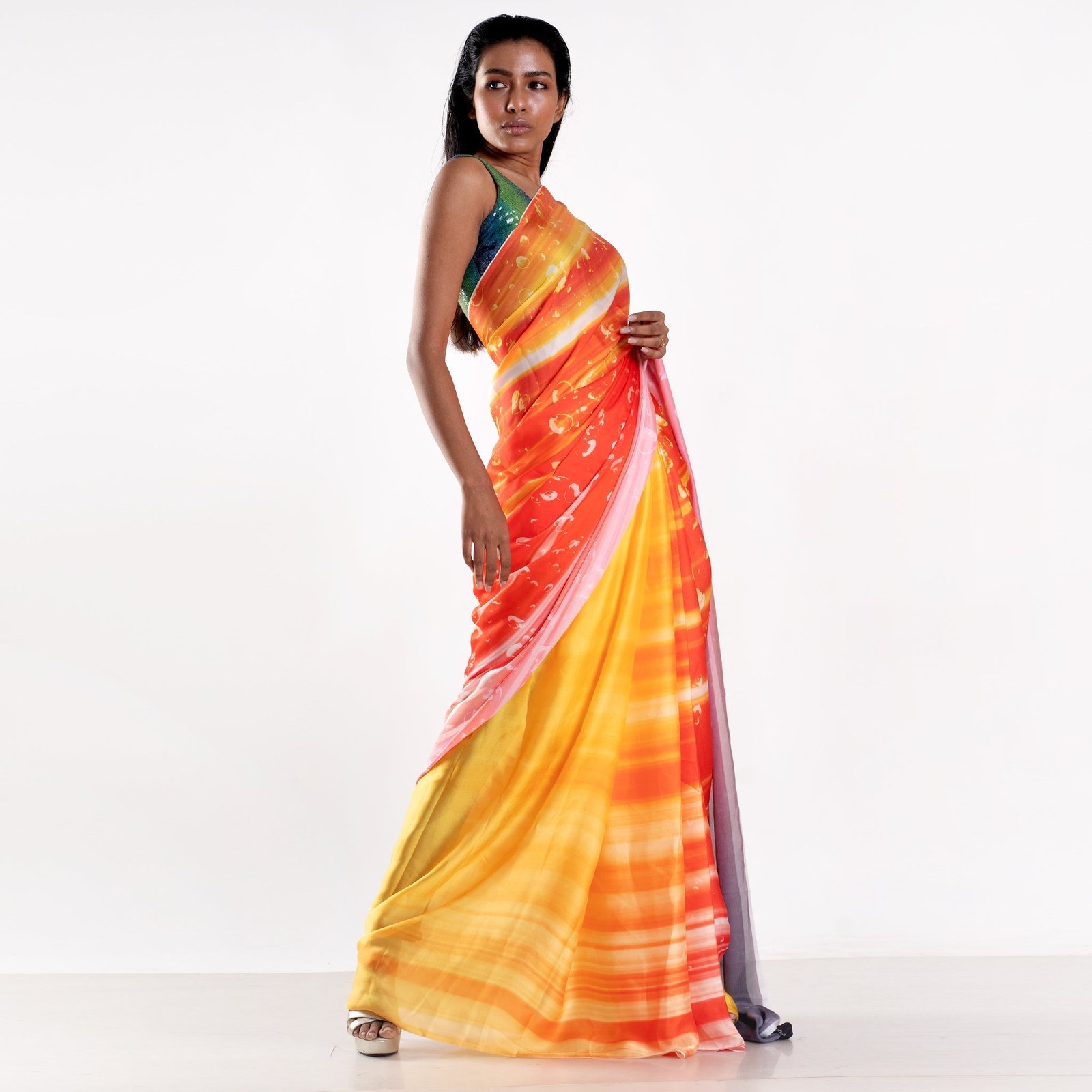 Don’t shy when you wear TIARA digital saree from Boveee like a Queen inside out