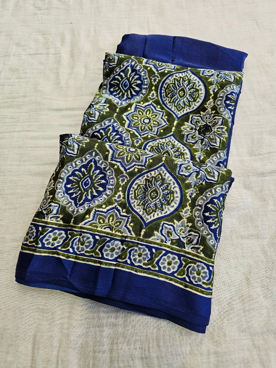 Ajrakh Digital Print Border with Ajrakh Rich Pallu With  Contrast Blouse