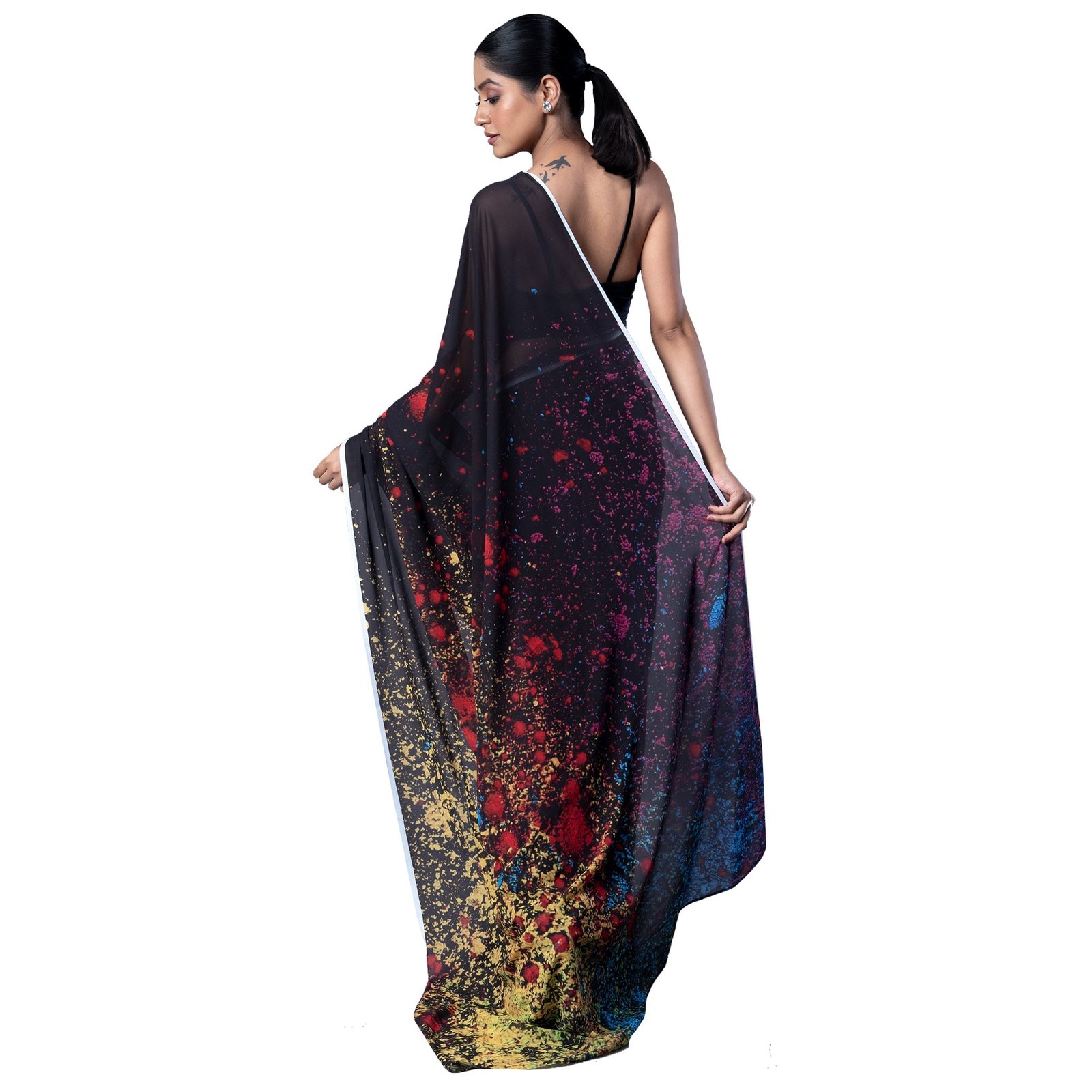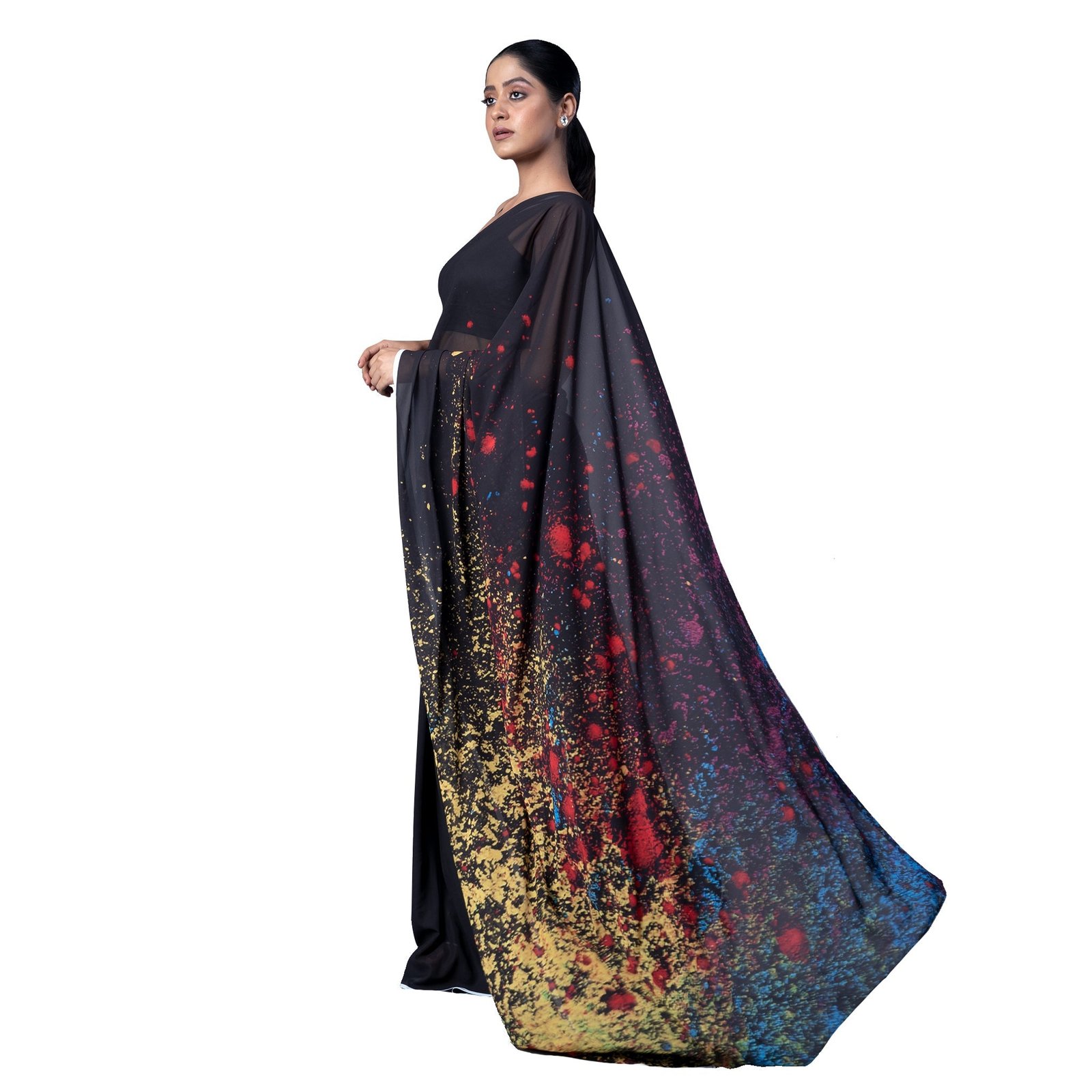 BOVEEE presents this Eliana Blended Georgette Digital Multicolor Printed Saree; this edition is seasonal and limited. Don’t wait and overthink on the decision of adding this new style to your wardrobe. The fashion world is moving with BOVEEE and you should too.