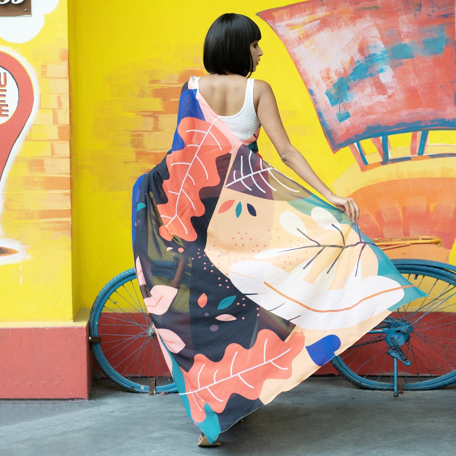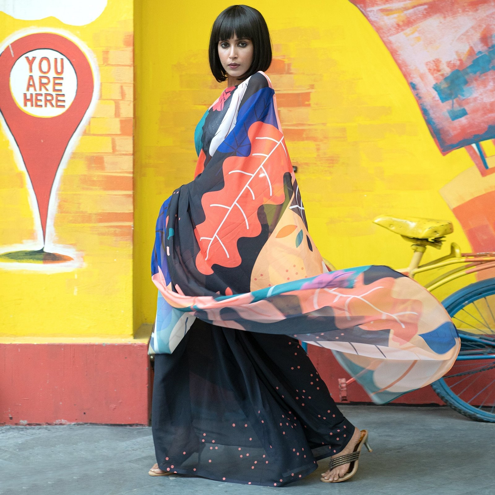 Don’t shy when you wear TIARA digital saree from Boveee like a Queen inside out