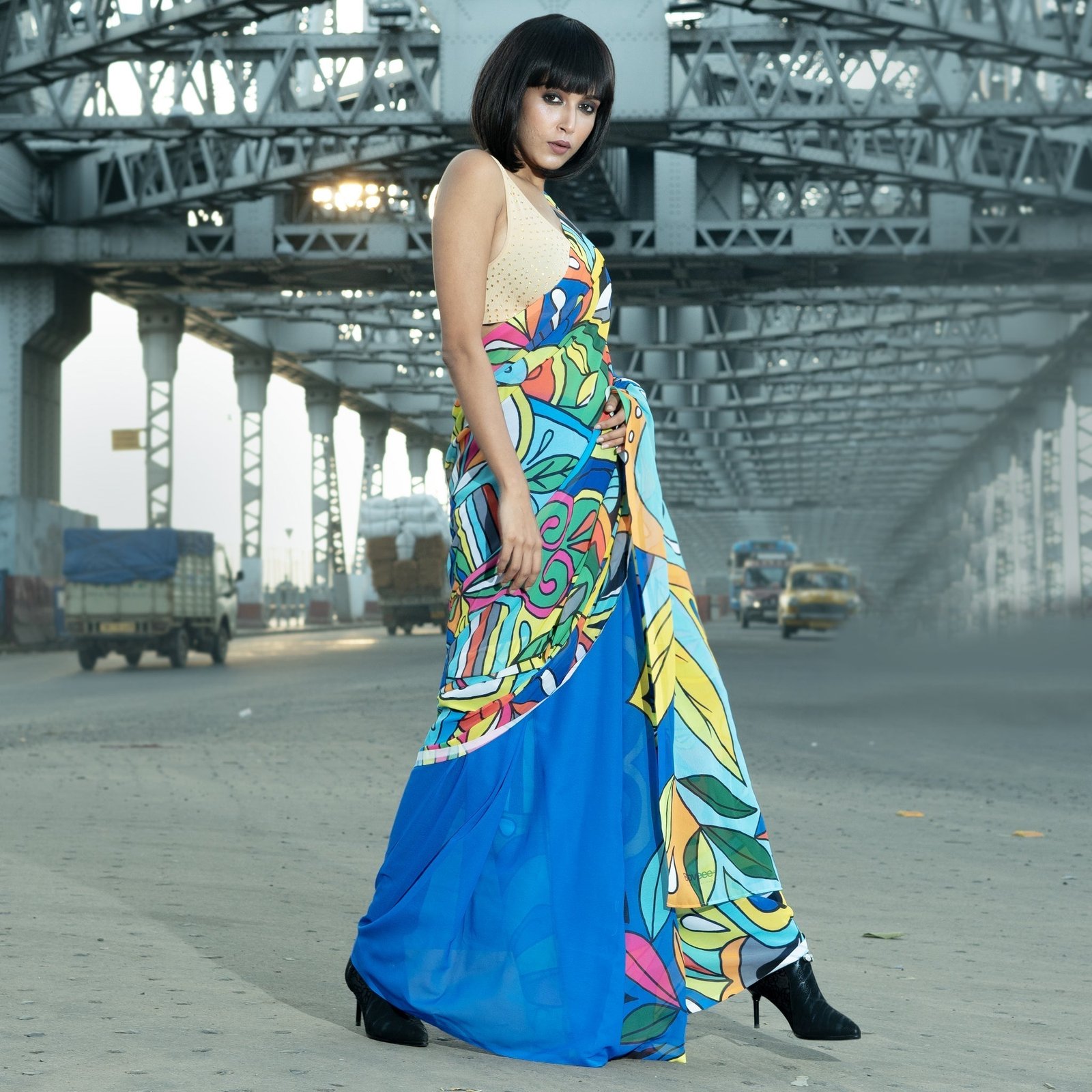 Don’t shy when you wear TIARA digital saree from Boveee like a Queen inside out