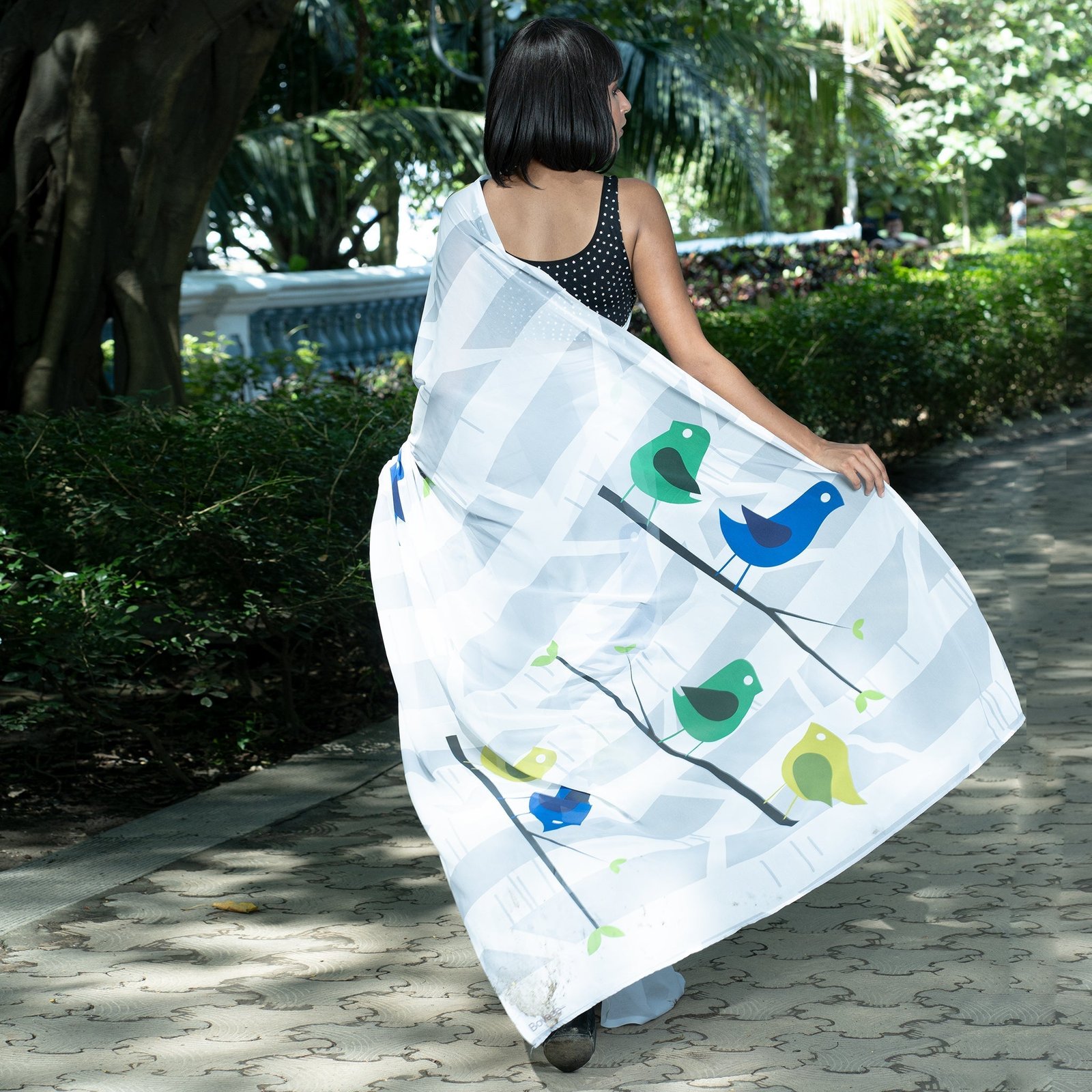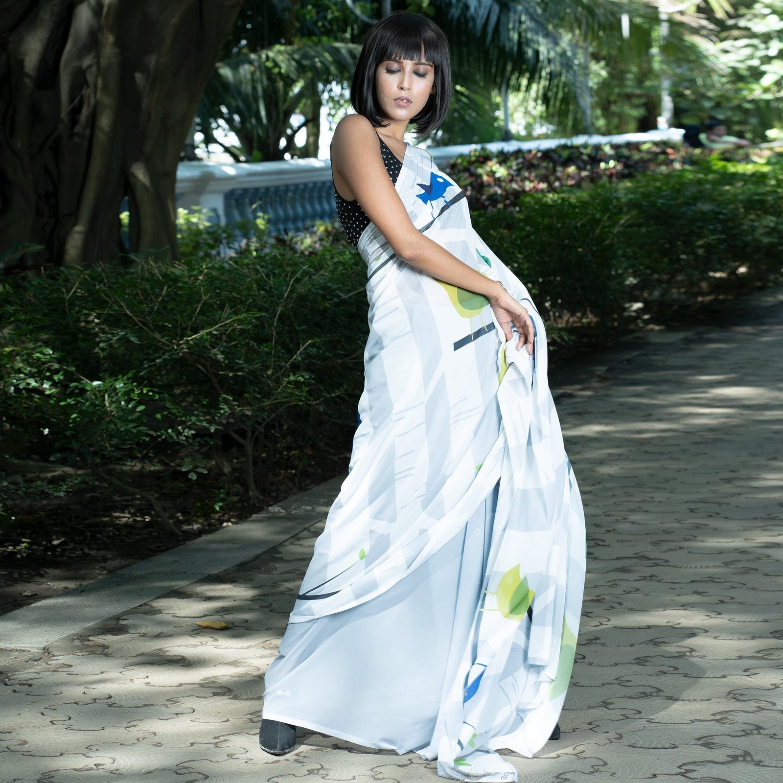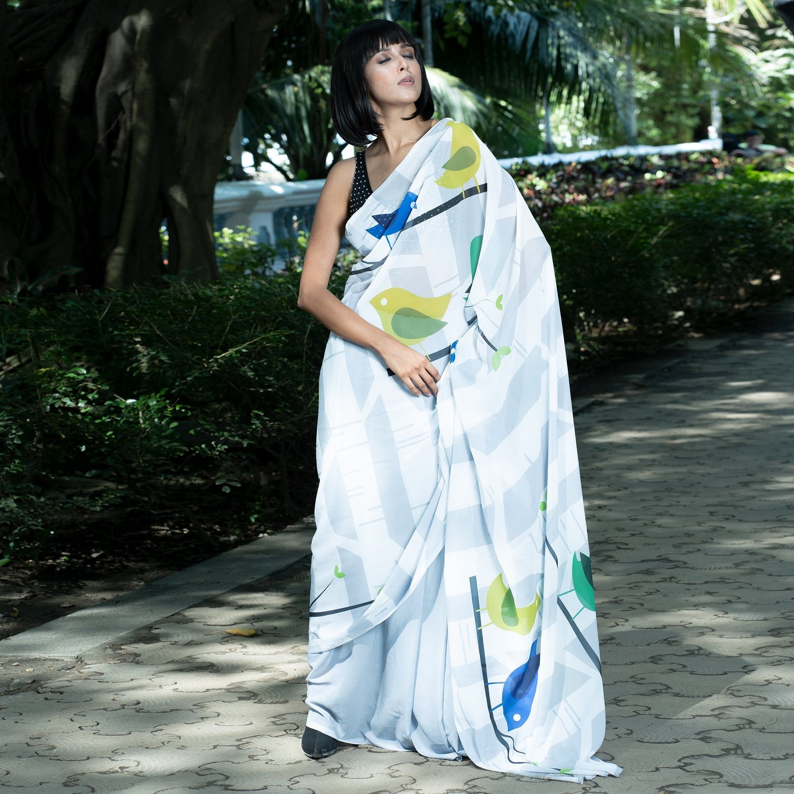 Don’t shy when you wear TIARA digital saree from Boveee like a Queen inside out