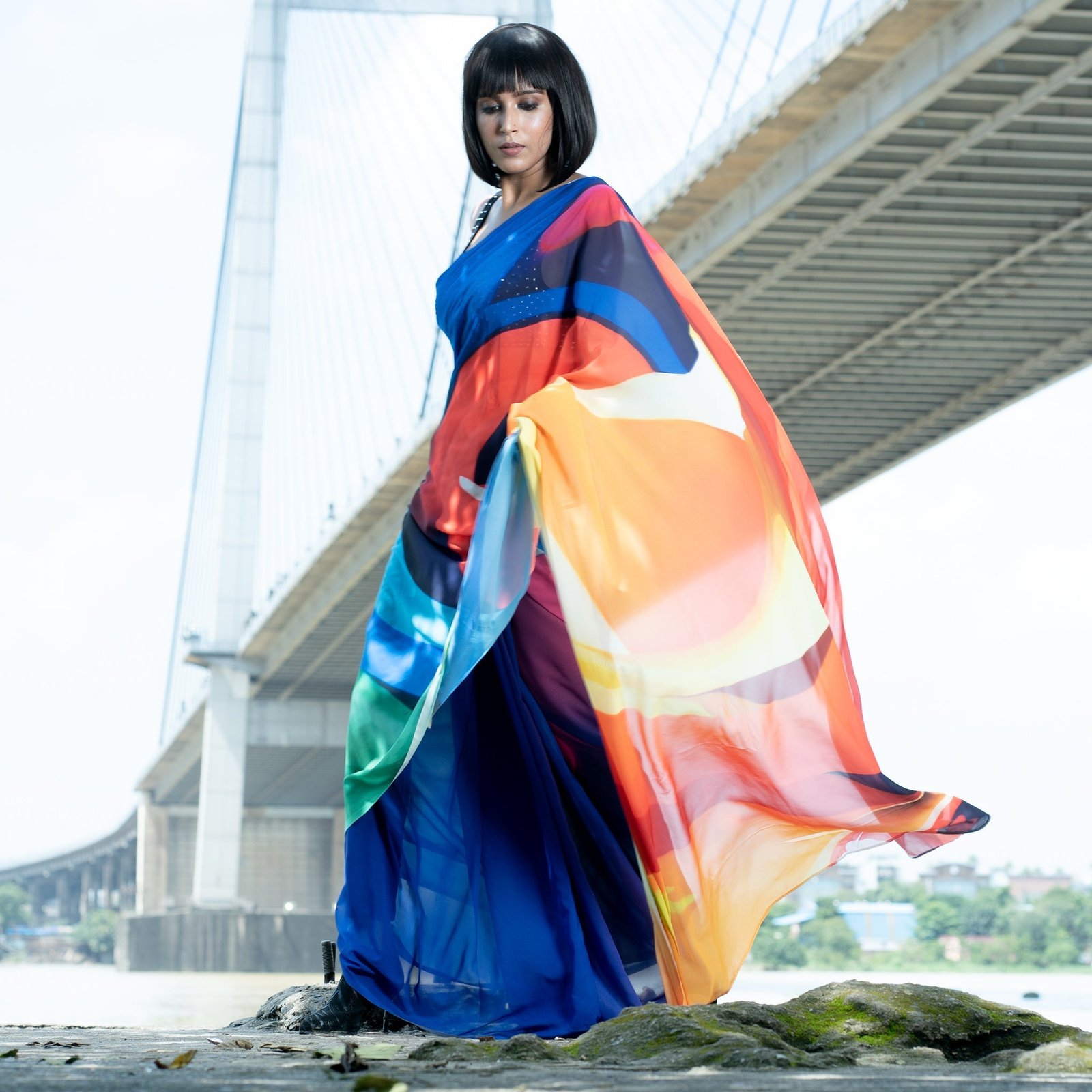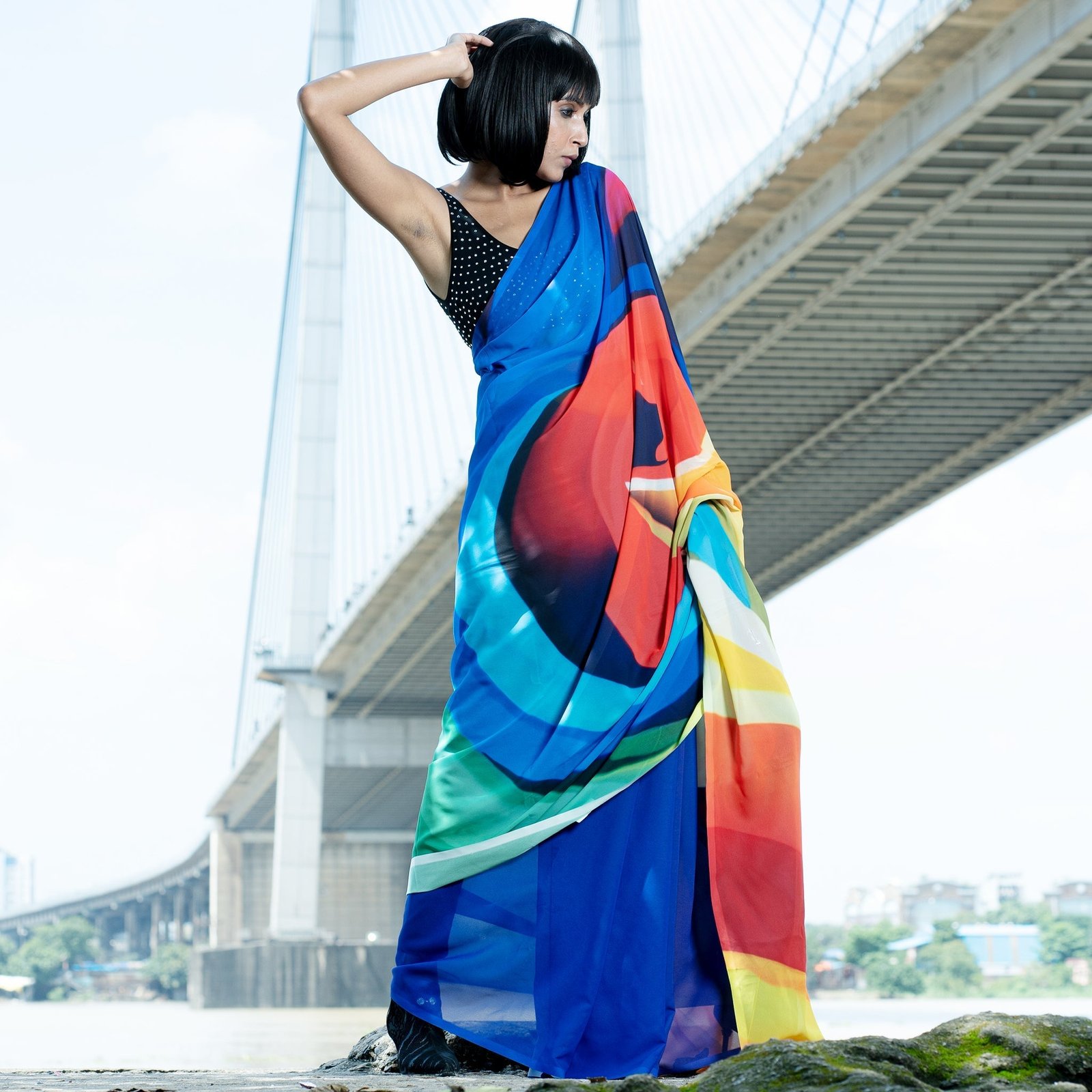 Don’t shy when you wear TIARA digital saree from Boveee like a Queen inside out