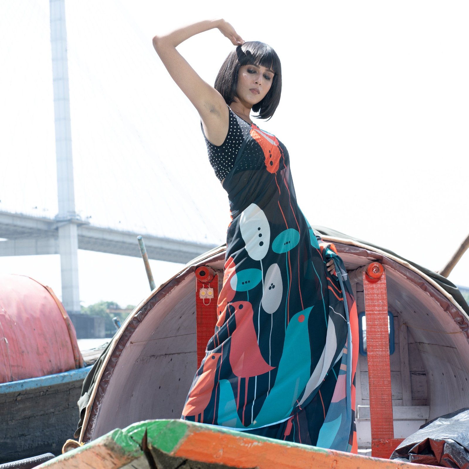 Don’t shy when you wear TIARA digital saree from Boveee like a Queen inside out