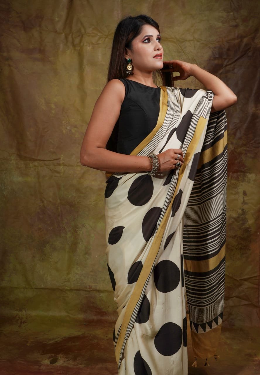 A2: The package includes a 5.5-meter saree and a 90 cm unstitched blouse piece.