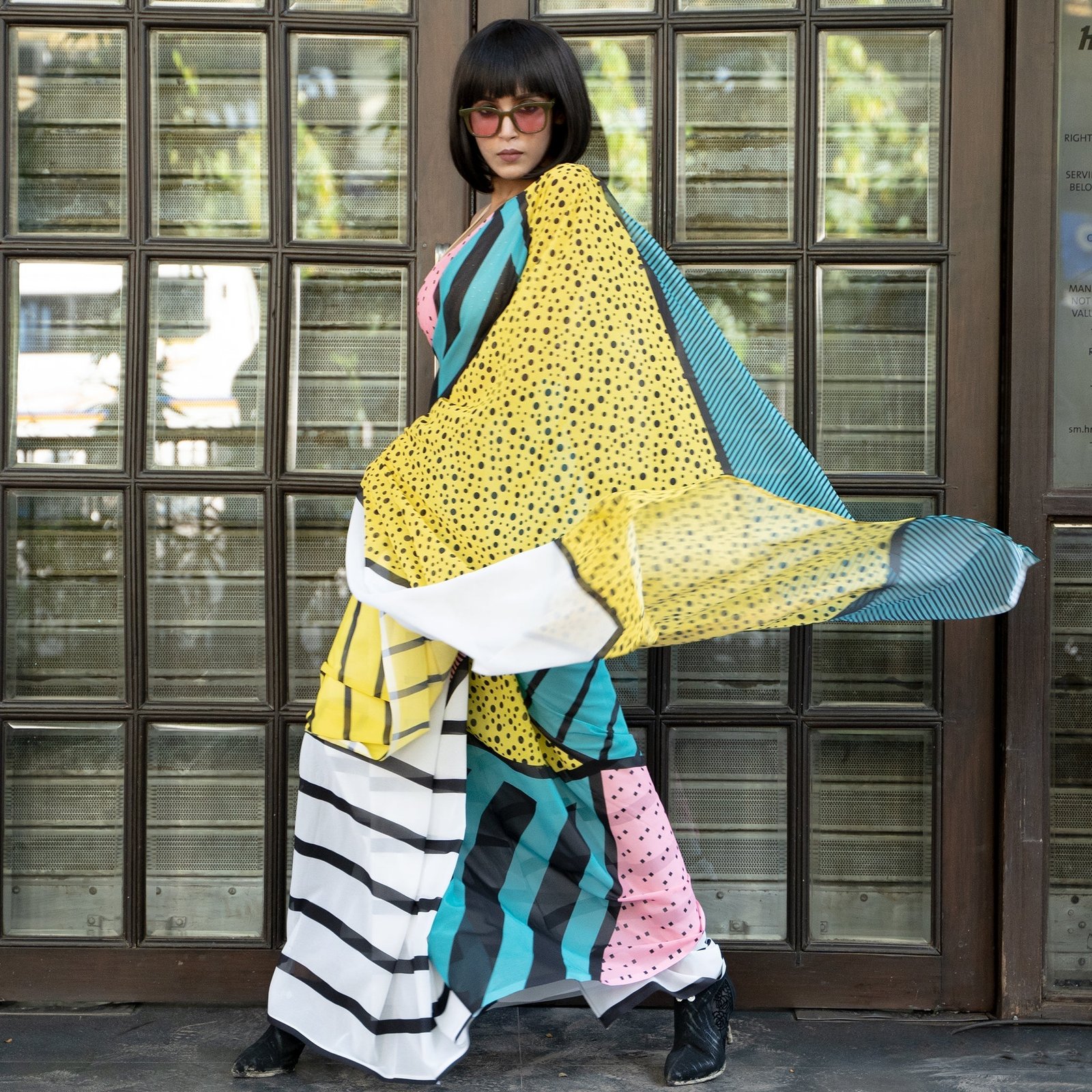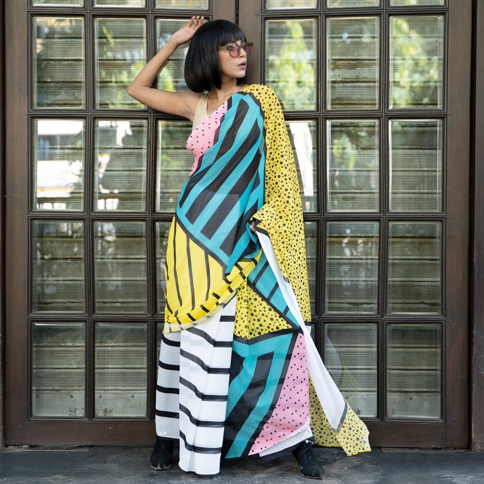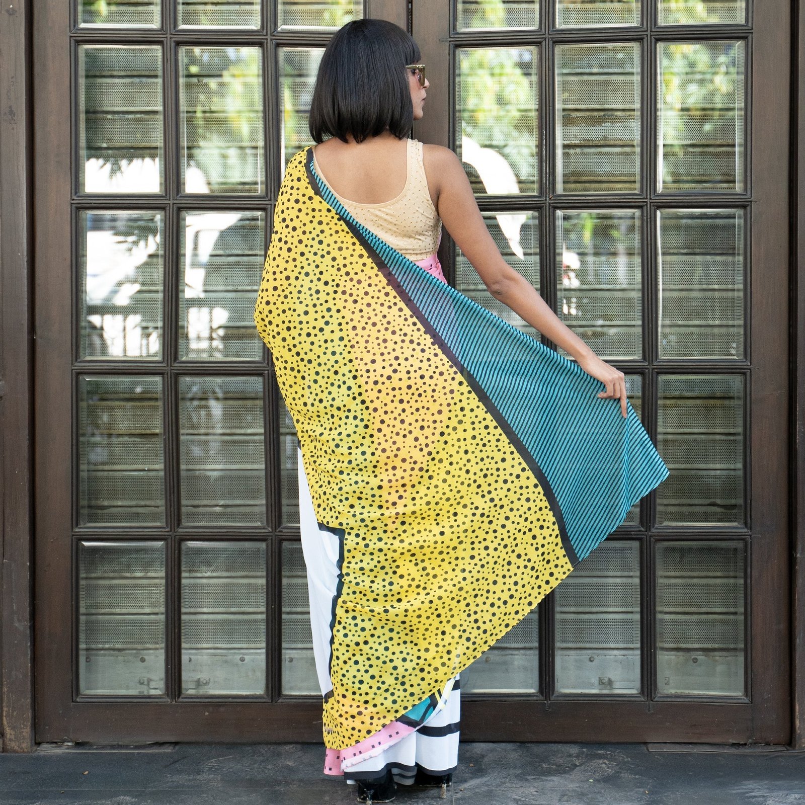 Don’t shy when you wear TIARA digital saree from Boveee like a Queen inside out