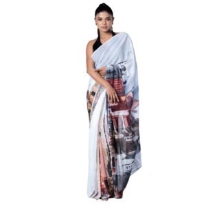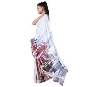 “Elegant Kalamkari Digital Printed Linen Saree with Blouse – Stylish & Timeless”